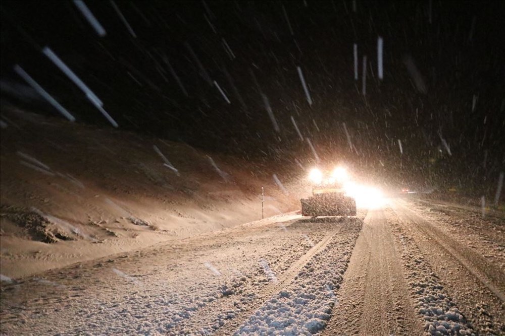 Erzincan’da etkili olan kar yağışı ve tipi, ulaşımda aksamalara neden oldu. Olumsuz hava koşulları nedeniyle hazırlıksız yakalanan bazı sürücülere, araçların trafiği engellememesi için kara yolları ve polis ekipleri iş makineleriyle destek verdi. ( Kemal Özdemir – Anadolu Ajansı )
