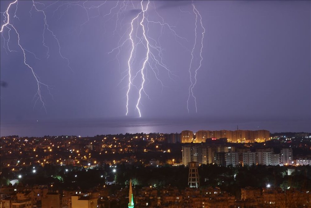 Hatay’ın İskenderun ilçesinde akşam saatlerinde şimşekler gökyüzünü aydınlattı. ( Burak Milli – Anadolu Ajansı )
