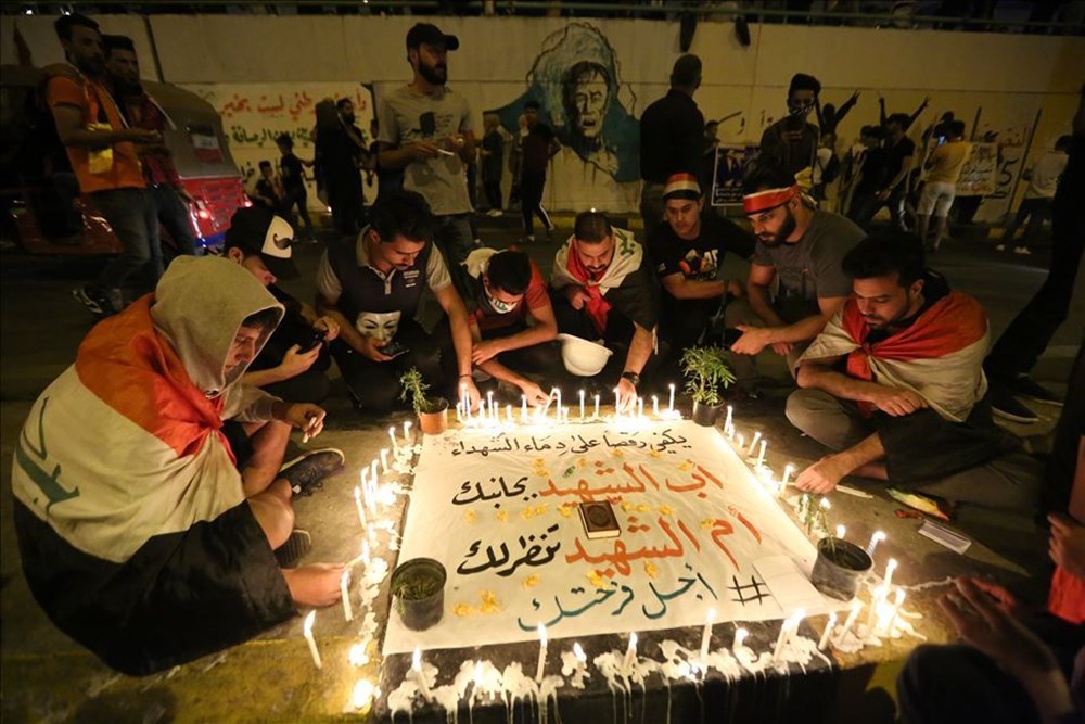 Irak’ın başkenti Bağdat ile ülkenin orta ve güney kentlerinde 25 Ekim’de yeniden başlayan hükümet karşıtı gösteriler aralıksız devam ediyor. Bağdat’taki Tahrir Meydanı’nda toplanan göstericiler, güvenlik güçlerinin müdahalesi sonucu hayatını kaybedenler için anma töreni düzenledi. Törene katılanlar mum yakıp dua etti. ( Murtadha Sudani – Anadolu Ajansı )
