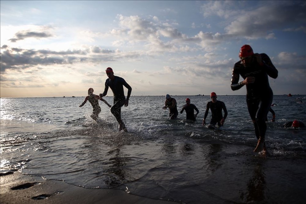 Yüzme, bisiklet ve koşudan oluşan Ironman 70.3 Türkiye yarışları, Antalya’da başladı. Belek Turizm Merkezi’ndeki Kadriye Beach Park sahilinden başlayan yarışlarda 84 ülkeden yaklaşık 2 bin sporcu mücadele ediyor. ( Orhan Çiçek – Anadolu Ajansı )