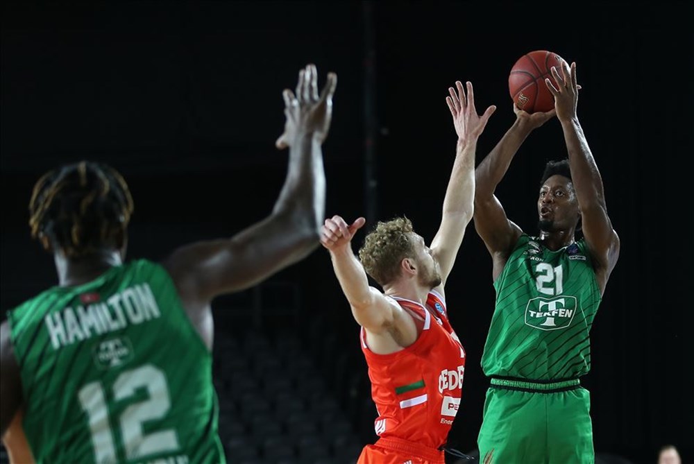 Darüşşafaka Tekfen, ULEB Avrupa Kupası 6. haftasında Slovenya’nın Cedevita Olimpija takımı ile Volkswagen Arena’da karşılaştı. Darüşşafaka Tekfenli basketbolcu Jarrod Jones (21) ile Cedevita Olimpijalı oyuncu Jaka Blazic (sağ 2) bir pozisyonda mücadele etti. ( İsa Terli – Anadolu Ajansı )
