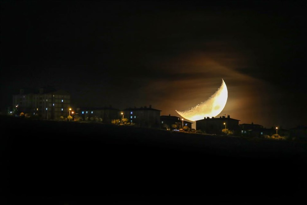 Van’da akşam saatlerinde şehrin üzerinde beliren hilal, güzel görüntü oluşturdu. ( Özkan Bilgin – Anadolu Ajansı )