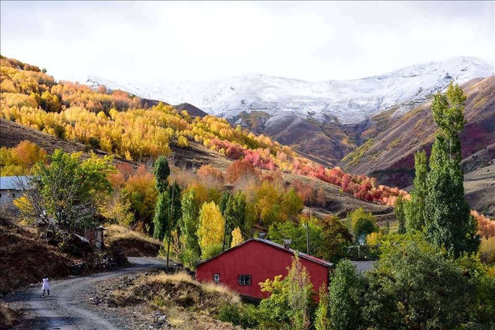 Muş’ta ağaçlar, sonbaharın gelmesiyle sarı, yeşil ve kırmızının tonlarına büründü. Kentteki 2 bin 500 rakımdaki Çavuştepe’nde etkili olan kar yağışının ardından beyaz örtünün, sonbahar renkleriyle uyumu güzel görüntüler oluşturdu. ( İbrahim Yaldız – Anadolu Ajansı )