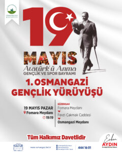 Osmangazi Belediye Başkanı Erkan Aydın, 19 Mayıs Atatürk’ü Anma, Gençlik ve Spor Bayramı’nı coşku içerisinde kutlamak adına tüm Bursalıları, 1. Osmangazi Gençlik Yürüyüşü’ne davet etti.