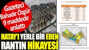 Hatay’ı yerle bir eden rantın hikayesi Depreme karşı tedbirsiz tutumu, imar afları ve deprem sonrası yaşanan yetersiz müdahalelerin ardından tepki toplayan İktidar ve yandaş medya depremin faturasını CHP ve Barış Atay’a kesti. Bunun üzerine Gazeteci Bahadır Özgür, Hatay’ı yerle bir eden rantın hikayesini anlattı.