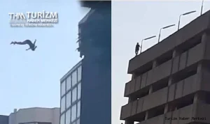 Çevrede bulunan vatandaşların ihbarı üzerine olay yerine çok sayda sağlık ve itfaiye ekibi sevk edilirken polis çevrede güvenlik önlemi aldı. Ekiplerin 1,5 saat süren ikna çabalarına karşılık vermeyen A.E. kendisini onlarca metre yükseklikteki otelin otopark çatısından boşluğa bıraktı.