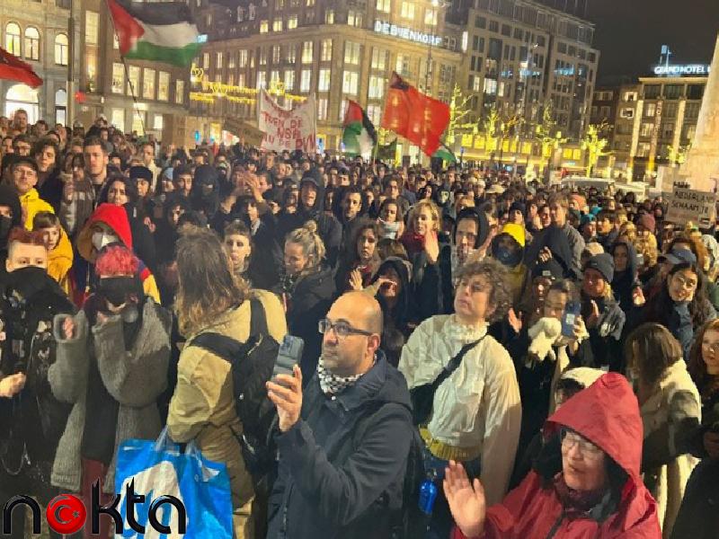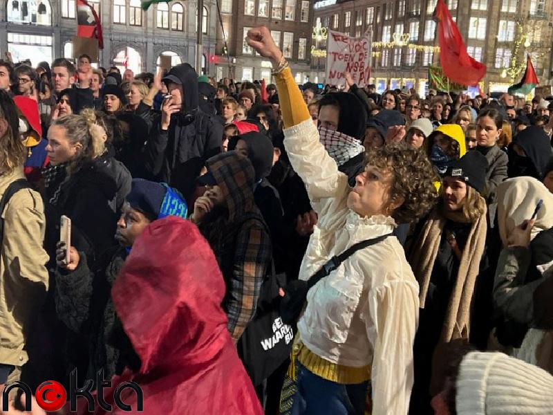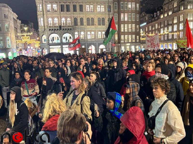 Hollanda’daki Amsterdam Dam Meydanı’nda toplanan yüzlerce kişi, çok sağcı, ırkçı ve ayrımcı siyasetleri protesto ederken, Wilders liderliğindeki PVV’nin seçimi birinci sırada tamamlamasına reaksiyon gösterdi.
