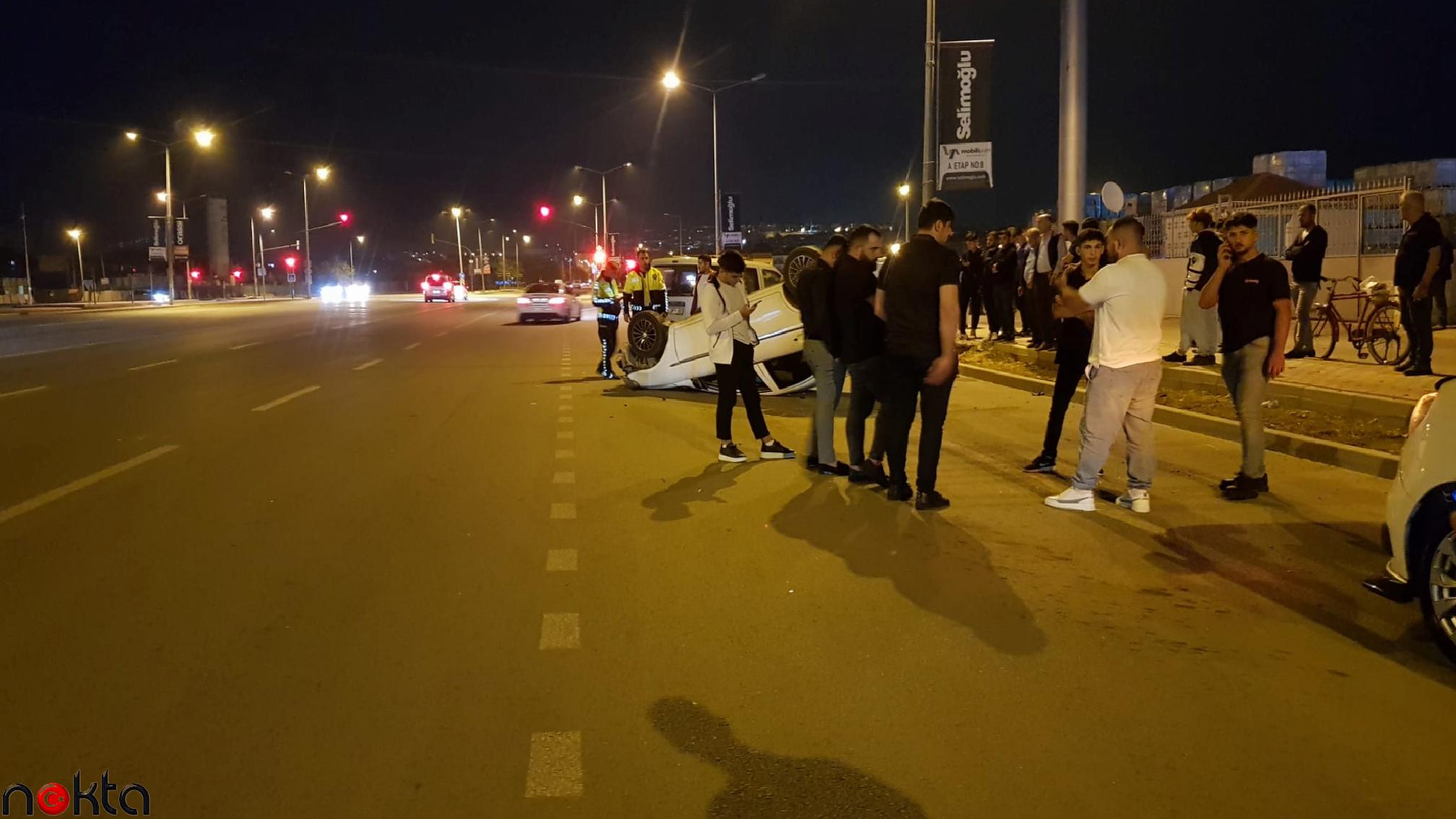 Kazada, ters dönen araçta bulunan Muhammet A. (19) yaralandı.