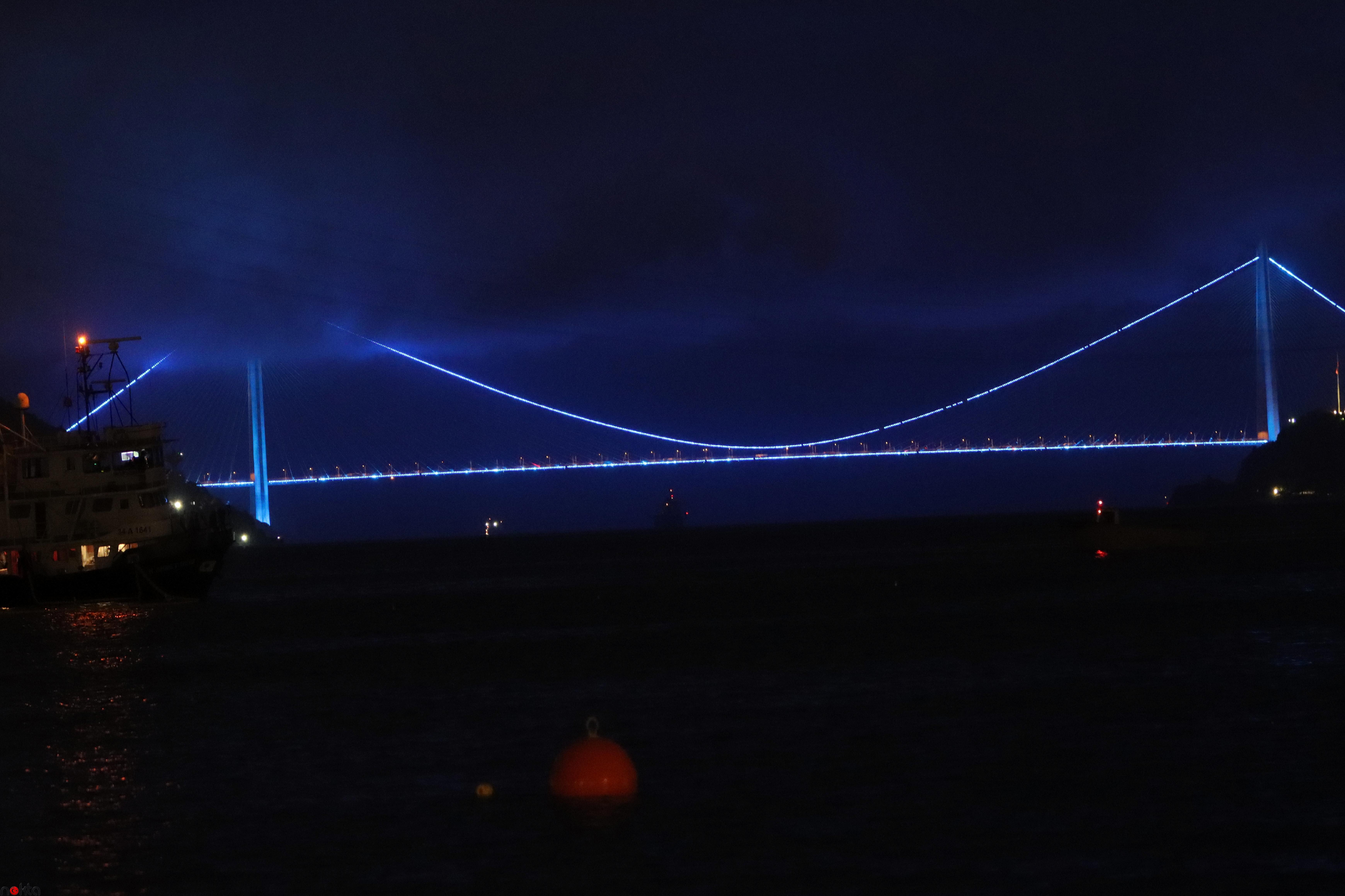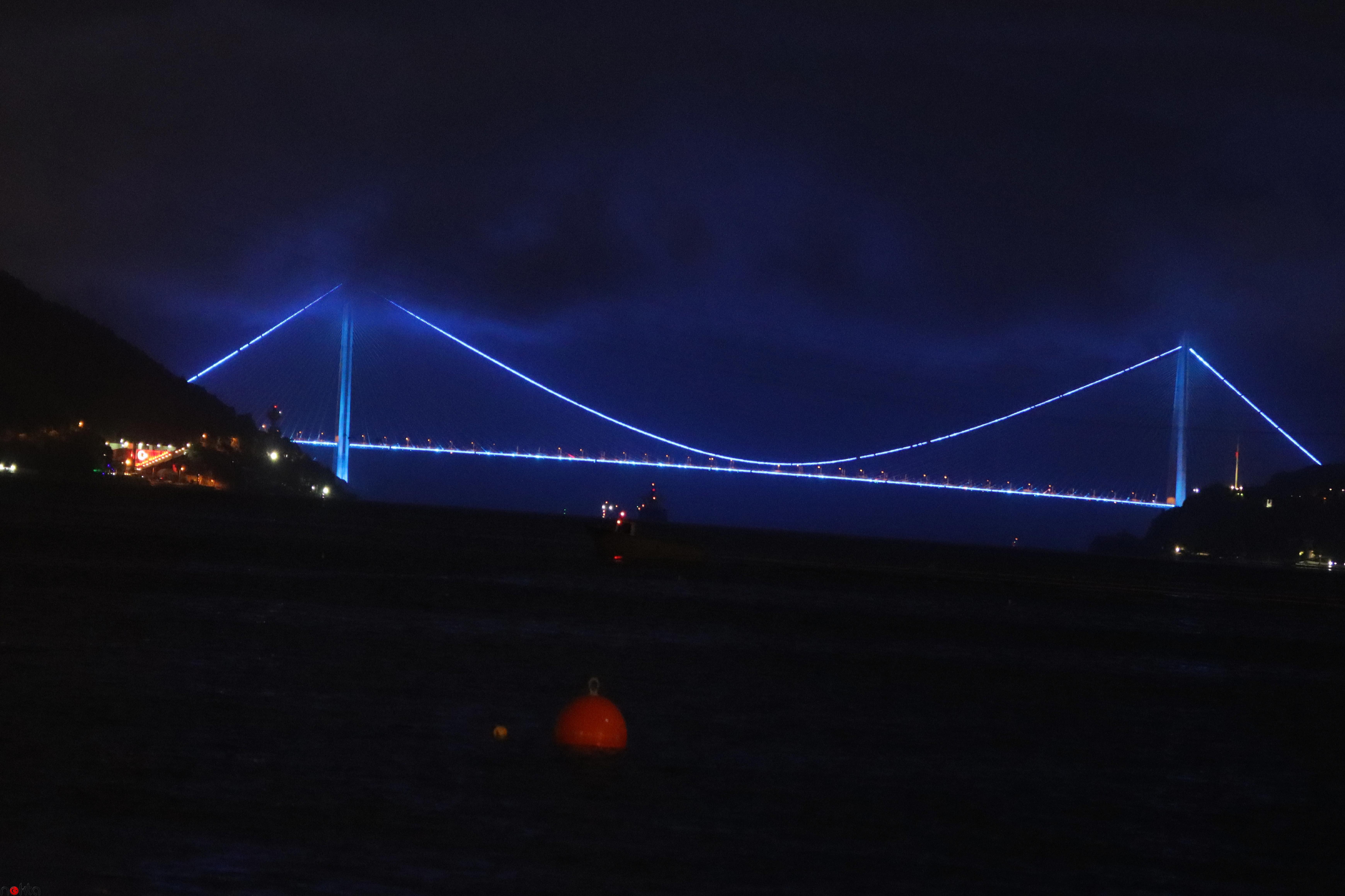 Önemli günlerde renk ve ışık şovlarıyla aydınlatılan köprüler, bu sefer denizciliğin ehemmiyetine dikkati çekmek için maviye büründü.