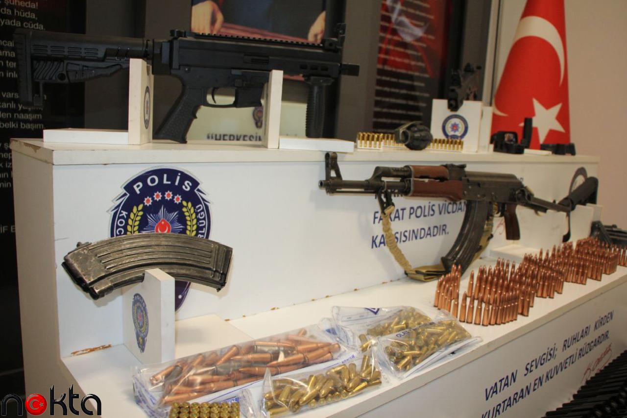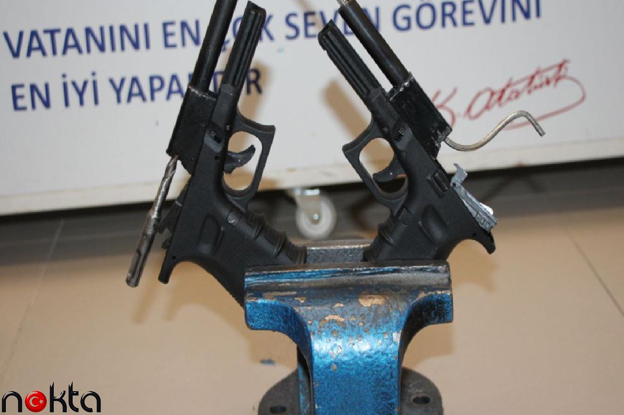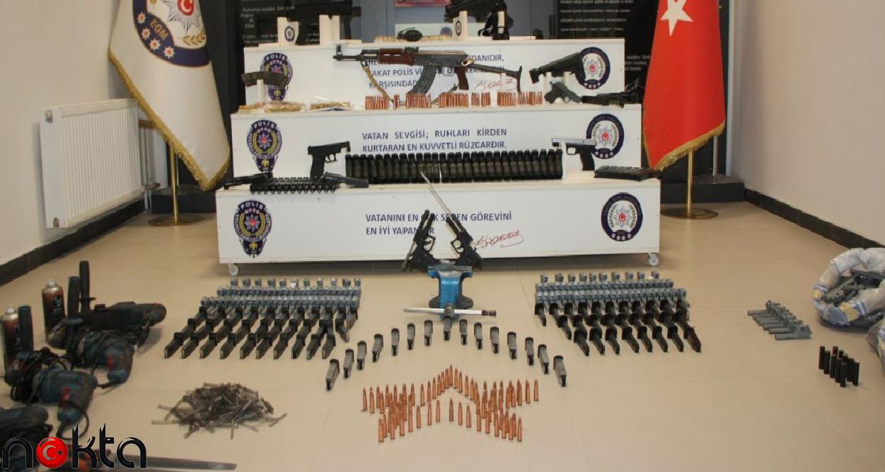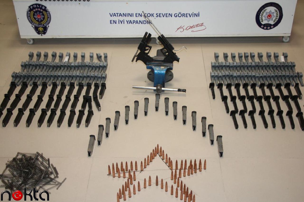 Şüphelinin ikameti, aracı ve kullandığı depoda yapılan aramalarda, uzun namlulu silah ve bu silaha ait 2 dolu şarjör ile 288 mermi, tabanca ve uzun namlulu silahlara ait 570 fişek, 31 sürgüsüz tabanca, 1043 değişik çaplarda silah namlusu, farklı silahlara ait 87 şarjör, 34 tabanca üst sürgüsü, çok miktarda muhtelif tabanca parçaları, tabanca ve uzun namlulu silahlara ait birçok aksesuar malzemesi, (dürbün, el kundağı, dipçik), silah imalatında ve namlu değişiminde kullanılan birçok torna ve montaj aletleri ele geçirildi.