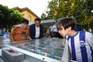 BURSA – Köylerdeki vatandaşlar Osmangazili olmanın ayrıcalığını yaşıyor Osmangazi Belediyesi tarafından yaz döneminde 32 farklı kırsal mahallede gerçekleştirecek olan Köyümüzde Şenlik Var etkinliklerinin bu haftaki adresi Yeniceabat Mahallesi oldu. Osmangazi Belediye Başkanı Erkan Aydın’ın da katıldığı şenlik programına, mahalle sakinlerinin ilgisi yoğun oldu. Eğlence dolu saatlerin yaşandığı programa katılan gencinden yaşlısına yüzlerce kişi, unutamayacakları bir gün geçirdi. Programa katılan çocuklar, şişme oyun parkuru, penaltı atma alanı, zıp zıp, yüz boyama atölyesi, langırt masası, minyatür futbol alanında doyasıya eğlendi. Ayrıca mahalle sakinleri ve çocuklara lokma, pamuk şeker, patlamış mısır ve limonata ikramı yapıldı. Bu eğlence dolu günde mahalle sakinlerini yalnız bırakmayan Başkan Aydın, çocuklarla birlikte langırt oynayarak eğlencelerine ortak oldu.