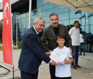 Sertifikalarını alan öğrenciler, aileleri ve antrenörleri ile birlikte Osmangazi Belediye Başkan Yardımcısı Mutlu Esendemir ve Osmangazi Belediyespor Kulübü Yönetim Kurulu Başkanı Fatih Karayılan ile hatıra fotoğrafı çektirdi.