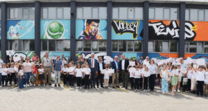 BURSA – Osmangazi Belediyesi ve Gençlik Spor İl Müdürlüğü işbirliğinde düzenlenen ‘Kort Tenisi Eğitimi’ kursuna katılan 340 NOSAB İlkokulu öğrencisine ücretsiz olarak temel tenis eğitimi verildi. Osmangazi Belediyesi Ertuğrul Sağlam Spor Tesisleri’nde düzenlenen kursa katılan çocuklar, haftanın 5 günü uzman antrenörler ile antrenman yapma fırsatı buldu. Kursta belli bir seviyeye ulaşan ve yapılan seçmelerde başarı sağlayan çocuklar, Osmangazi Belediyespor bünyesindeki performans gruplarıyla eğitimlerine devam etmeye hak kazandı. Altyapıya seçilen çocuklar, 2023-24 sezonunda il genelinde düzenlenen resmi turnuvalarda altın, gümüş ve bronz madalya kazanma başarısı gösterdi. Kort Tenisi Eğitimi’ni başarıyla tamamlayan öğrenciler, için Ertuğrul Sağlam Spor Tesisi’nde sertifika töreni düzenlendi. Öğrenciler sertifikalarını Osmangazi Belediyesi Başkan Yardımcısı Mutlu Esendemir ve Osmangazi Belediyespor Yönetim Kurulu Başkanı Fatih Karayılan’ın elinden aldı.