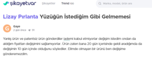 Lizay Pırlanta bu sefer yanlış ve patentsiz ürün gönderdi