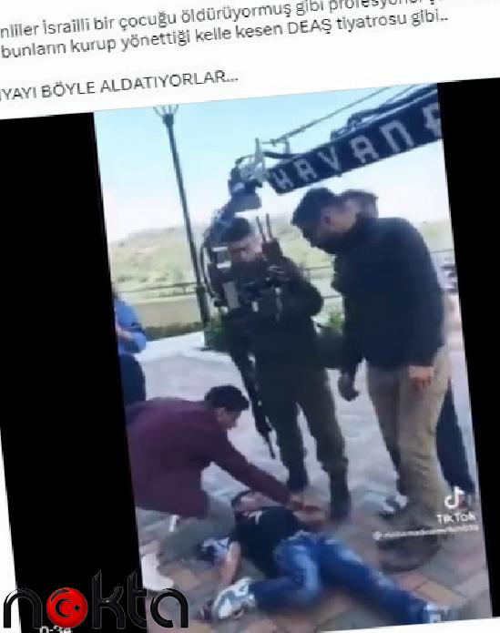 Gökçek videoyu X hesabından “Tiyatro size de tanıdık geldi mi? Filistinliler İsrailli bir çocuğu öldürüyormuş gibi profesyonel çekim tiyatrosu. Hani bunların kurup yönettiği kelle kesen DEAŞ tiyatrosu gibi.. Dünyayı böyle anlatıyorlar…” sözleriyle paylaştı.