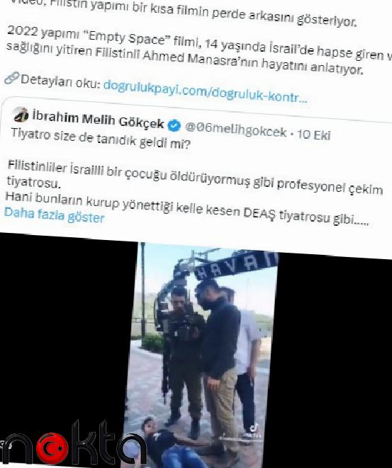 Eski Ankara Büyükşehir Belediyesi Başkanı Melih Gökçek’in, İsraillilerin kurgu video çektiği iddiasıyla paylaştığı görüntüler, kısa filmin perde arkası çıktı. ‘Filistinlilerin, İsrailli çocuğu öldürdüğü’ iddiasıyla kurgu video hazırlandığını paylaşan Gökçek’in videosu, Empty Space filmine ait çıktı.