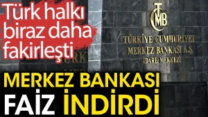 Merkez Bankası faiz indirdi Türkiye Cumhuriyet Merkez Bankası faiz toplantısı bitti. Merkez Bankası; faizi 1 puan düşürerek faizi 13’ten yüzde 12’ye indirdi.
