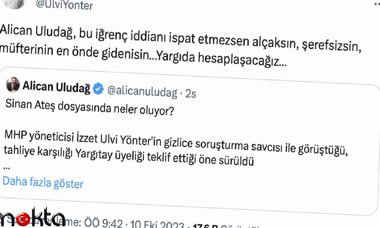 MHP’li Ulvi Yönter, söz konusu haberin sahibi gazeteci Alican Uludağ’ı sosyal medya hesabından hedef aldı.