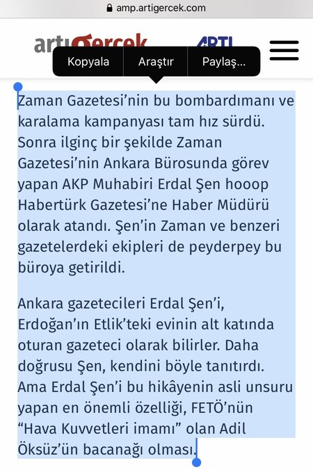 “Zaman Gazetesi’nin bu bombardımanı ve karalama kampanyası tam hız sürdü. Sonra ilginç bir şekilde Zaman Gazetesi’nin Ankara Bürosunda görev yapan AKP Muhabiri Erdal Şen hooop Habertürk Gazetesi’ne Haber Müdürü olarak atandı. Şen’in Zaman ve benzeri gazetelerdeki ekipleri de peyderpey bu büroya getirildi.”