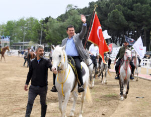 Osmangazi Belediye Başkanı Erkan Aydın, yarış alanına ata binerek giriş yaptı.