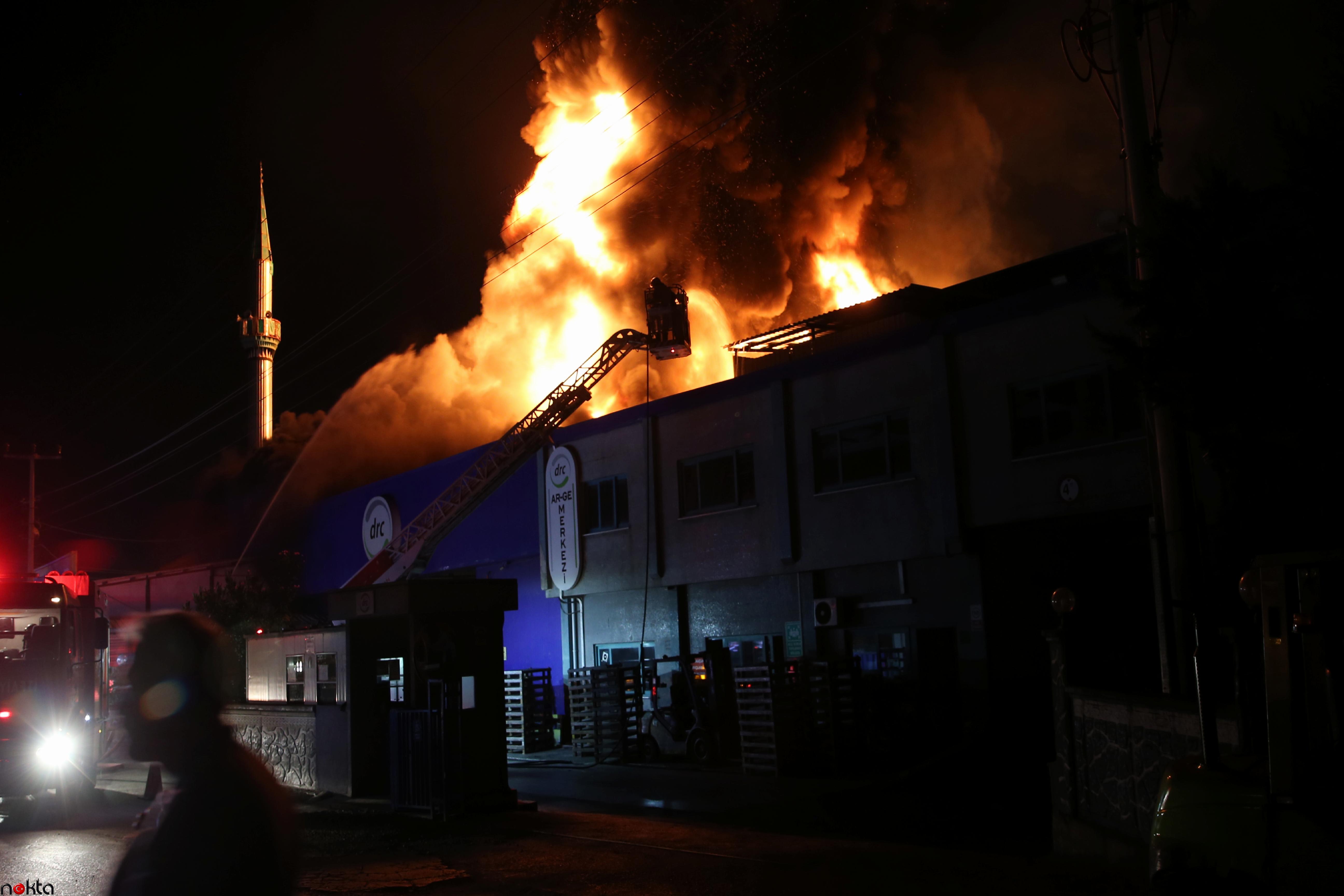 Yangın, fabrikanın yanındaki oto lastikçi, Beşköprü Merkez Camisi ve iki katlı eve sıçradı.