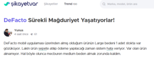 Bu ve buna benzer şikayetleri https://www.sikayetvar.com/defacto
