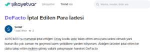 Öte taraftan DeFacto isimli mağazanın hizmetlerinde sürekli şikâyet aldığı görüldü.