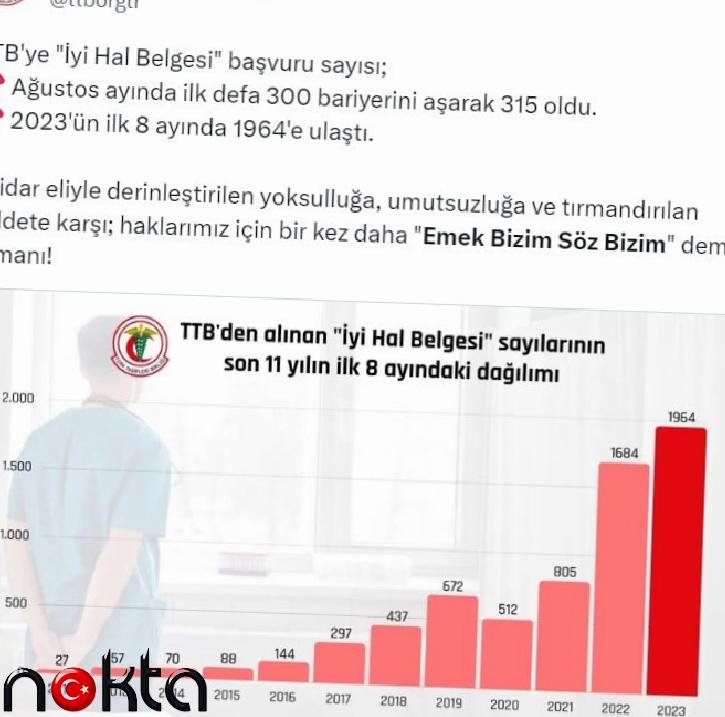 Türk Tabipler Birliği, toplumsal medya hesabından yaptığı açıklamada, sıhhat çalışanlarının yurtdışına gidebilmek için aldığı “İyi Hal Belgesi” müracaatları sayısının rekor kırdığını açıkladı.