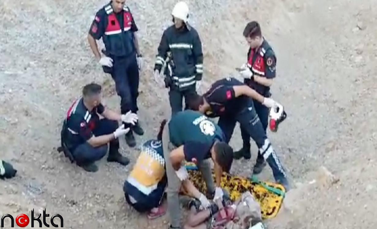 İlçe merkezine 20 kilometre uzakta Yenice Mahallesi’ndeki taş ocaklarının olduğu maden sahasında dolaşan avcılar bir kişinin kısık sesle yardım istediğini fark etmiş, sese yönelen avcılar, başında kask olan ve yerde bitkin halde yatan bir kadınla karşılaşmıştı.