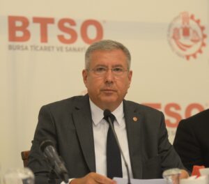 EKONOMİ – Bursa iş dünyasının çatı kuruluşu BTSO, üst düzey konuklarla üyelerini buluşturmaya devam ediyor. BTSO Ana Hizmet Binası’nda iş dünyasının yoğun katılımıyla düzenlenen toplantıda, Ticaret Bakan Yardımcısı Uçarmak, sebze ve meyve ticareti yapan firmalarla bir araya geldi. BTSO Meclis Başkan Yardımcısı Metin Şenyurt, olağanüstü koşullara karşın Türkiye’nin büyüme, istihdam ve ihracat rakamlarında pandemi öncesi dönemi yakaladığını ifade etti.