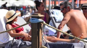 Kırmızı bikinisiyle denizden çıkarken görüntülenen Tuvana Türkay daha sonra şezlonguna geçip sevgilisi İzzet Antebi ile sohbet etti.