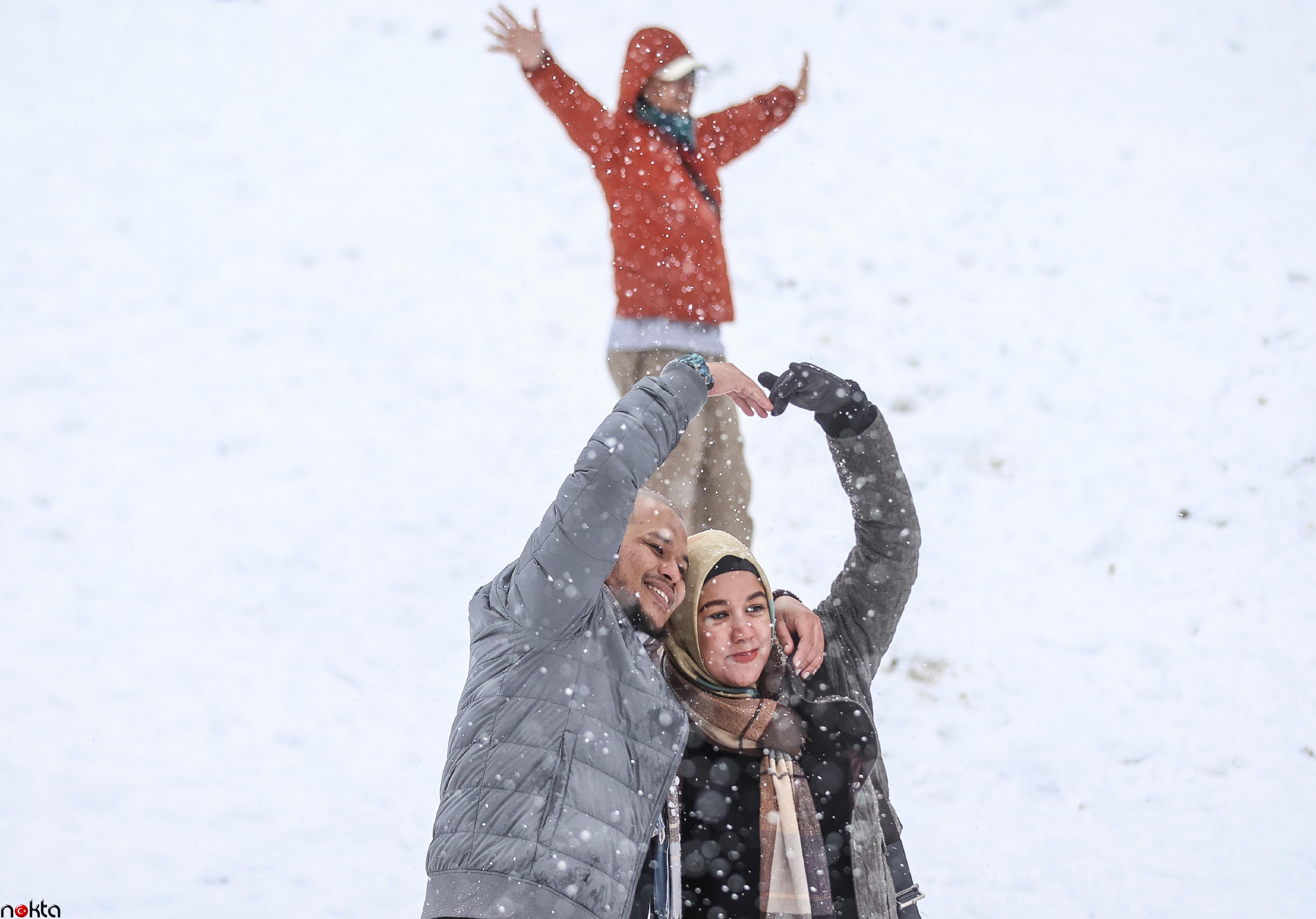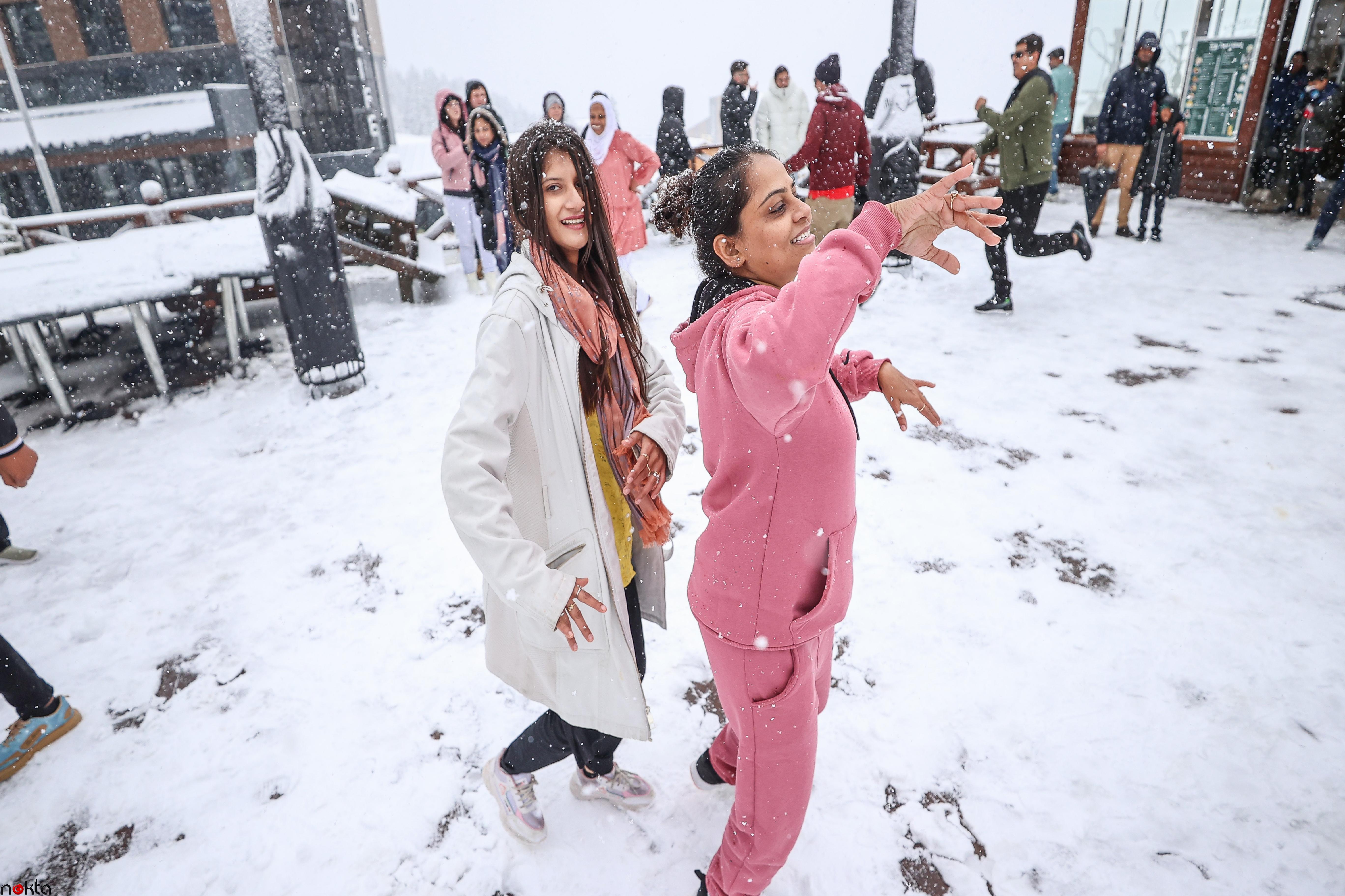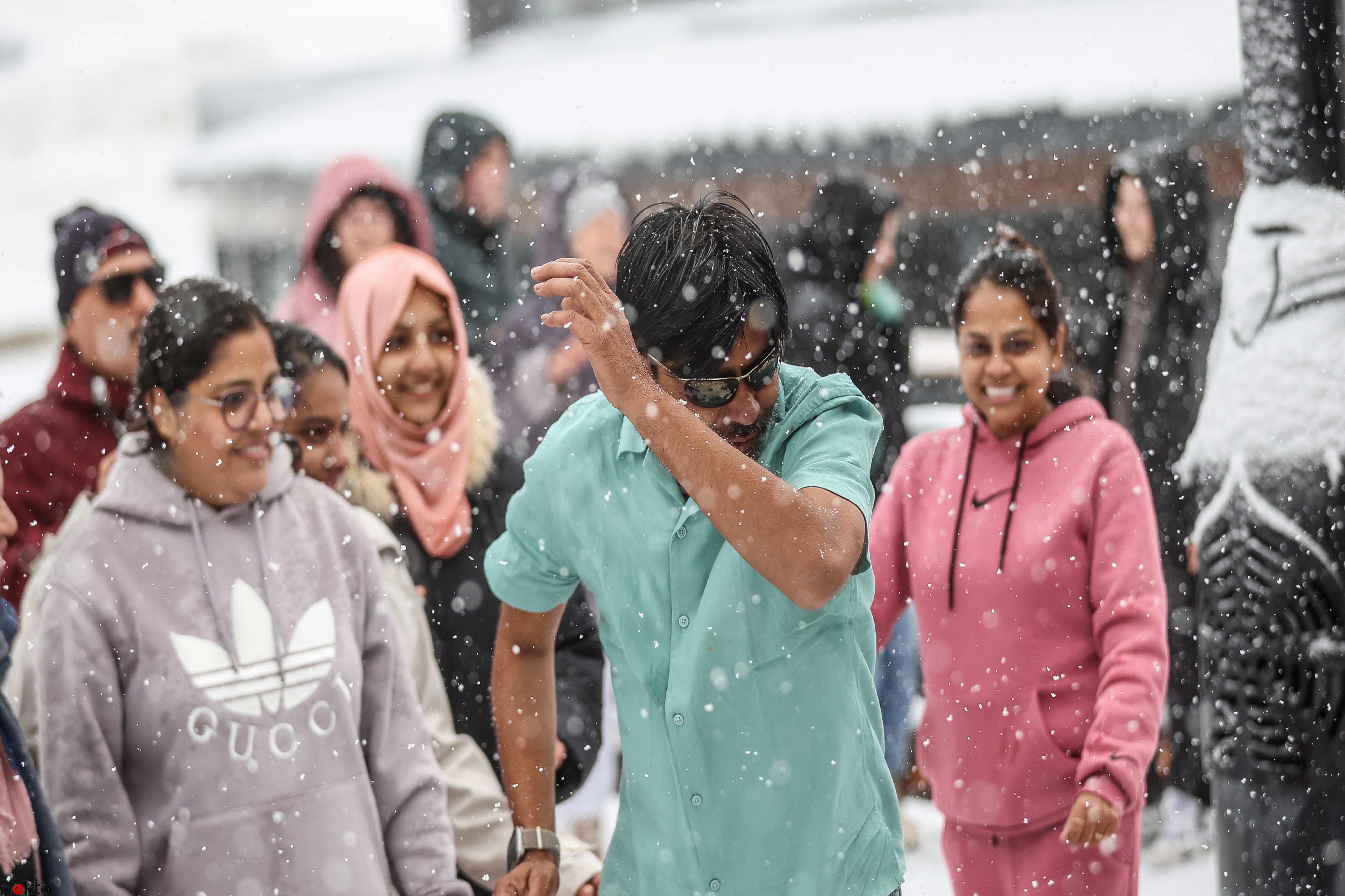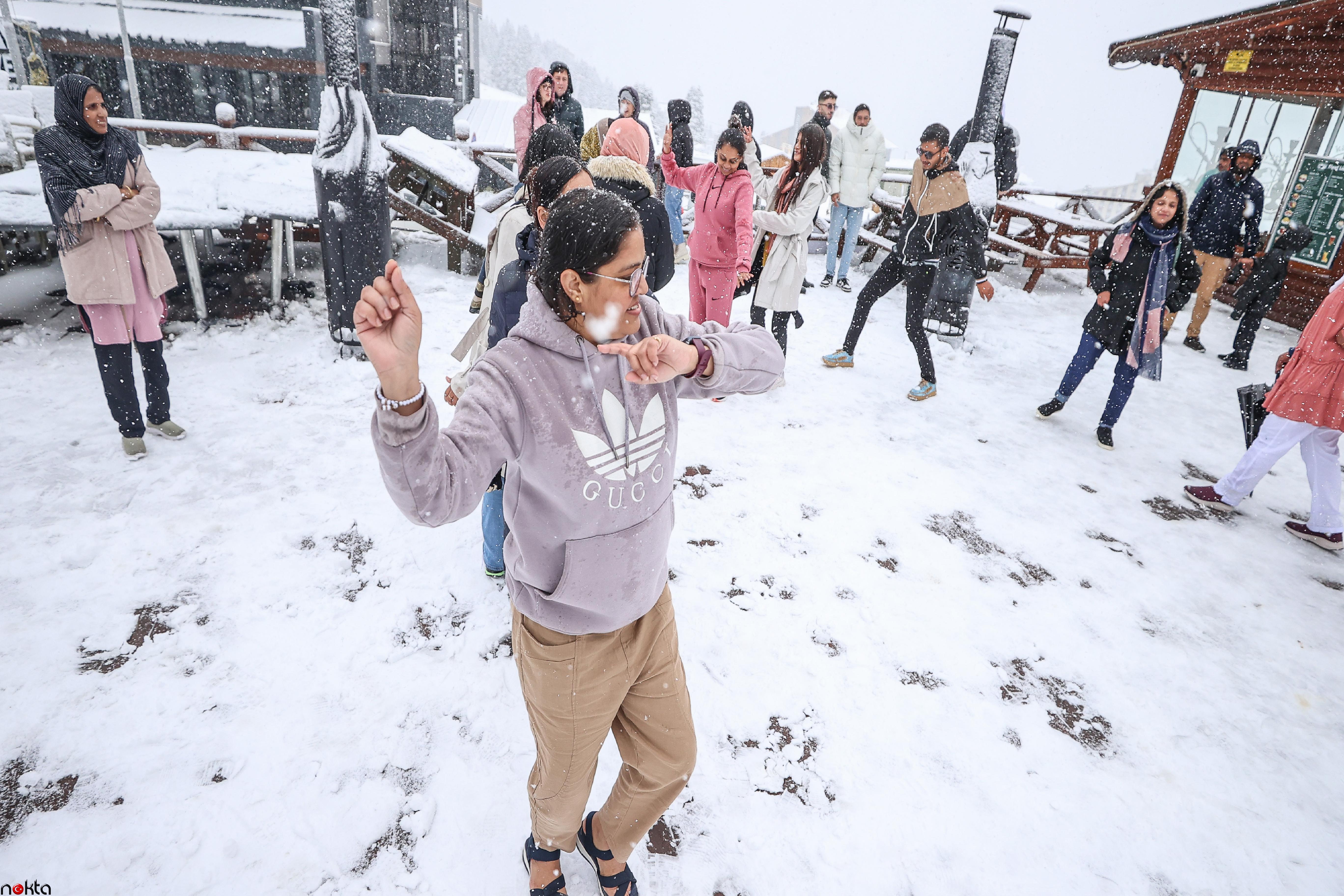 Kentte yaşayanlar güzel manzaranın tadını çıkarmak için Uludağ’a çıktı. Bölgeyi ziyarete gelen yabancı turistler de müzik eşliğinde kar üstünde oyunlar oynadı.