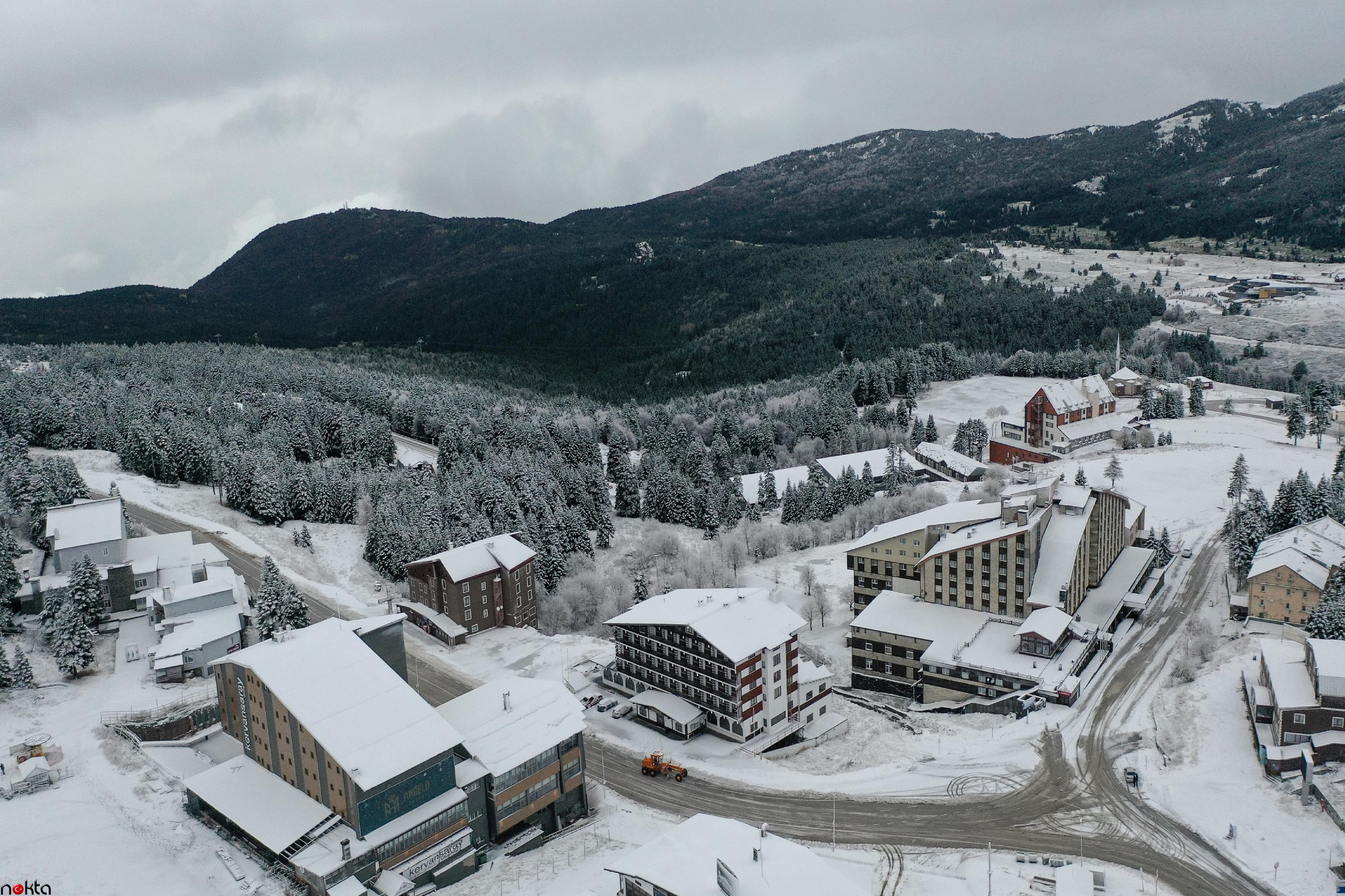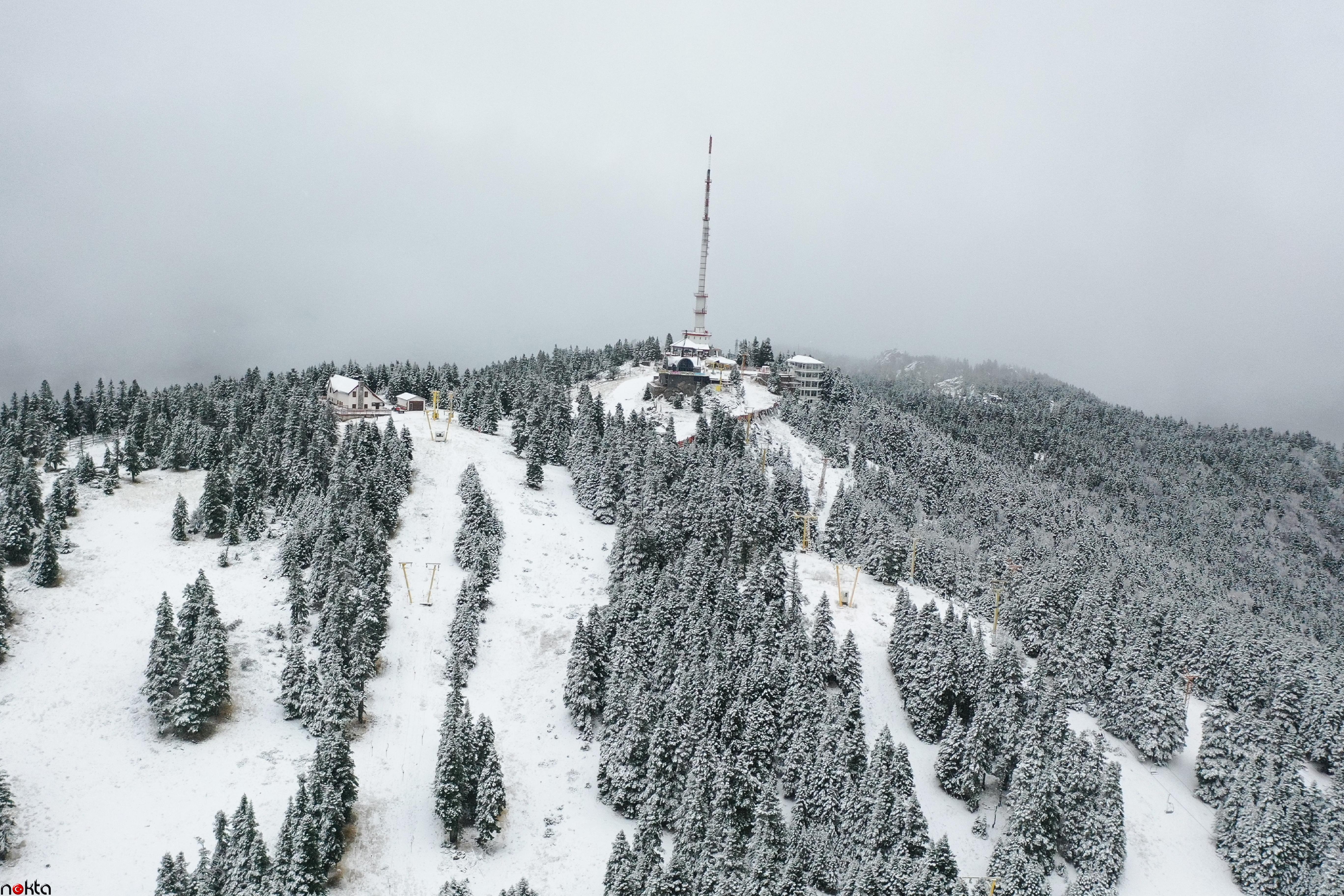 Her yıl yerli ve yabancı turistin ilgi gösterdiği Uludağ’da yağış nedeniyle Oteller Bölgesi ve kayak pistleri karla kaplandı.