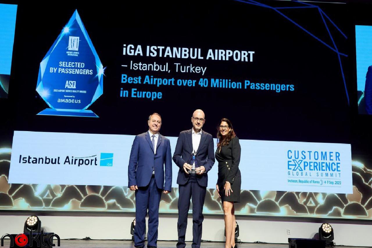 Havalimanlarında 40 milyon yolcu üstü kategorisinde “Avrupa’nın En İyi Havalimanı”, “Avrupa’nın En Keyifli Havalimanı” ve “Avrupa’nın En Temiz Havalimanı” seçilen İstanbul Havalimanı adına ödüller, İGA Üst Yöneticisi (CEO) Kadri Samsunlu’ya takdim edildi.