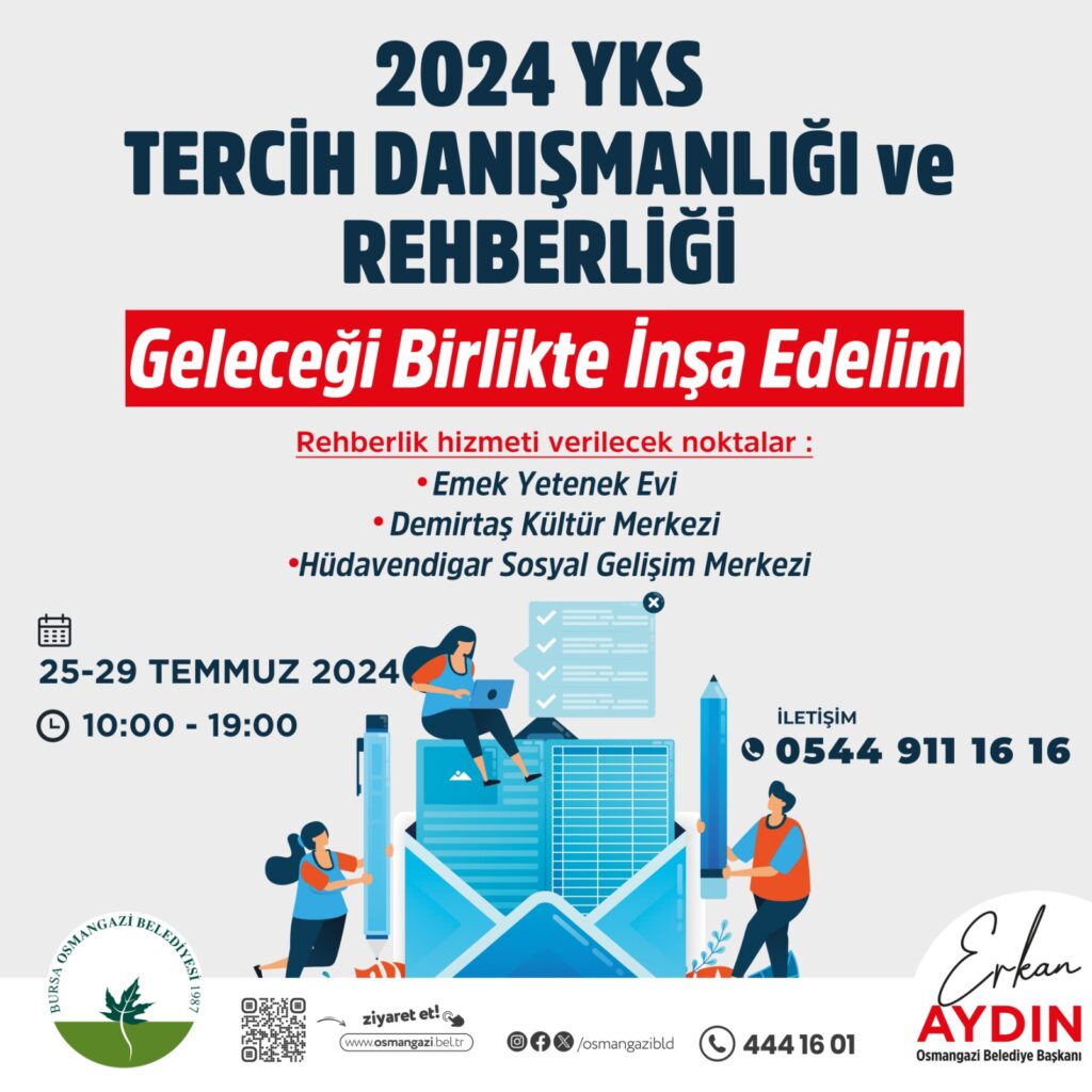 Osmangazi Belediye Başkanı Erkan Aydın, “Gençlerimizin geleceğini şekillendirecek olan bu süreçte onların yanında olmak, doğru tercihler yapmalarını sağlamak amacıyla bu hizmeti sunuyoruz. Geleceklerini doğru yönlendirmeleri ve bilinçli tercih yapabilmeleri adına gençlerimizi ve ailelerini ücretsiz danışmanlık noktasını ziyaret etmeye davet ediyorum” dedi.