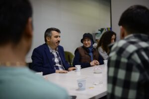 Gençlerle sohbet eden fikirlerini dinleyen Başkan Yılmaz,