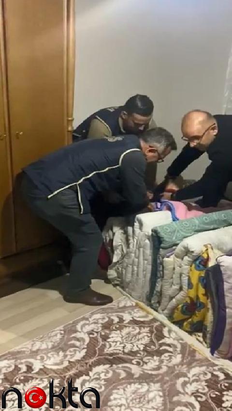 Operasyon sırasında, “hırsızlık” suçundan 13 yıl kesinleşmiş hapis cezası bulunan L.İ.’nin ise yorganların arasına saklandığı görüldü.