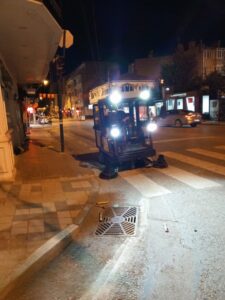 BURSA – Yenişehir’de temizlik mesaisi Yenişehir Belediyesi, halk sağlığını tehdit eden haşerelere karşı yürüttüğü mesaiyi son sürat devam ettirirken Yenişehir Belediyesi Temizlik İşleri Müdürlüğü’ne bağlı ekipler de, gece boyunca, daha temiz bir Yenişehir için mesai yapıyor. Özellikle, gece saatlerinde yapılan temizlik çalışmaları sayesinde hem trafik aksamıyor hem de ilçe halkı tertemiz bir güne başlıyor. Temizlik görevlileri bir yandan sokakları temizleme çalışması yaparken, diğer yandan da çöp konteynerlarını da dezenfekte ediyor.