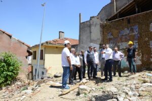 BURSA – Yıldırım Belediyesi, ‘2022 Tapu ve Dönüşüm Yılı’ çalışmaları kapsamında imar uygulama projelerini hız kesmeden sürdürüyor. Piremir Mahallesi’nde özel sektör eliyle gerçekleştirilecek kentsel dönüşüm projesi kapsamında 33 bina ve 60 bağımsız bölümden oluşan sağlıksız yapıların yıkım çalışmaları başladı. Çalışmaları yerinde inceleyen Yıldırım Belediye Başkanı Oktay Yılmaz, Piremir Mahallesi’ndeki mevcut yolun genişletileceğini söyledi. Yıldırım’ı geleceğe taşıyacak imar uygulama planlarını bir bir hayata geçirdiklerini belirten Başkan Yılmaz,