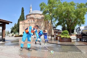 “Vatandaşımızın sağlığını düşünerek, kalabalık olan ortamlarda, çocuk oyun parklarında, camilerimizde, okullarımızda kısacası ilçenin her noktasında temizlik çalışması gerçekleştiriyoruz. Ekiplerimiz cadde ve sokakları köpüklü suyla yıkayarak dezenfekte ediyor. Zarar görmüş, yıpranmış çöp konteynerlerinin tamir, bakım ve onarımını gerçekleştiriyoruz. Geride bıraktığımız yıl içerisinde 2 bin 280 çöp konteynerinin bakım çalışmasını yaptık” dedi.