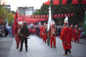 BURSA – Yıldırım’da ‘Zafer’ Coşkusu Yıldırım Belediyesi, Büyük Taarruz ve Başkomutanlık Meydan Muharebesi’nin 102’nci yıl dönümü ve 30 Ağustos Zafer Bayramı’nı büyük bir coşku ile kutladı. Yıldırım Belediye Başkanı Oktay Yılmaz, Yıldırım ilçe Kaymakamı Metin Esen, AK Parti Yıldırım İlçe Başkanı İrfan Akkaya, il ve ilçe yöneticileri ile vatandaşların katıldığı 30 Ağustos programları kapsamında Gökdere Meydanı’ndan Ahmet Taner Kışlalı Meydanı’na zafer yürüyüşü gerçekleştirildi. Ardından protokol ve misafirler Ahmet Taner Kışlalı Meydanı’nda ‘Malazgirt’ten Büyük Taarruza Tarih Tüneli ve Sergisi’ni ziyaret etti. Meydanda düzenlenen mehter takımı ve erguvan halk dansları gösterisi, Dj performansı ve Sanatçı Cengiz Ateş’in zafer konseri ile Yıldırımlılar unutulmayacak bir Zafer Bayramı yaşadı.